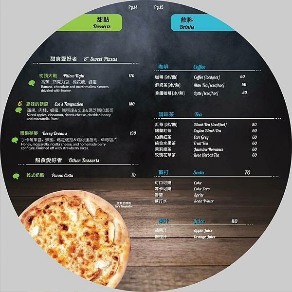 (這邊有個很有趣的部份,大家現場去點餐時可以看圓圓的MENU,跟點來的披薩差不多大小唷!)