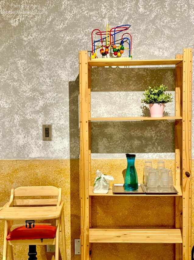 二樓的木頭桌椅搭配磨石子地板看起來有種懷舊風,我個人也蠻喜歡二樓的空間。有帶小孩過來用餐的父母也別擔心,餐廳內都有兒童椅可提供。