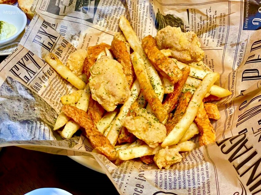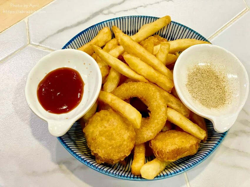 小潞拼盤的炸物內容是脆薯、雞塊和洋蔥圈,附上了番茄醬和胡椒鹽,這個炸物也是小孩會喜歡的,英國寶超愛。