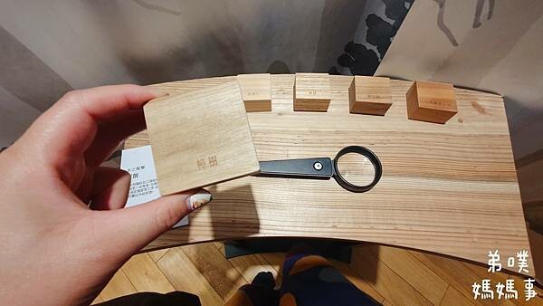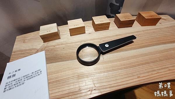 也能用放大鏡觀察木頭的紋路,也能拿起來感覺不同木頭的輕重,