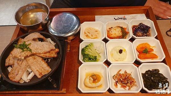 一上菜就被這滿滿的九宮格給吸引,吃韓食最期待的就是小菜,這九格小菜弟噗媽都滿喜歡的,尤其是那茄子