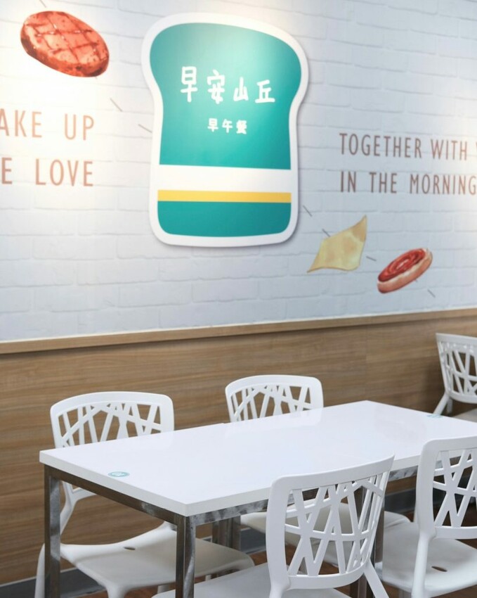 ▼【早安山丘 Morning Hill 】以溫暖的木質調風格為主,搭配大片的純白色磚型牆面,跟大家熟悉的早餐店印象大不同,更多了乾淨度以及質感氛圍。