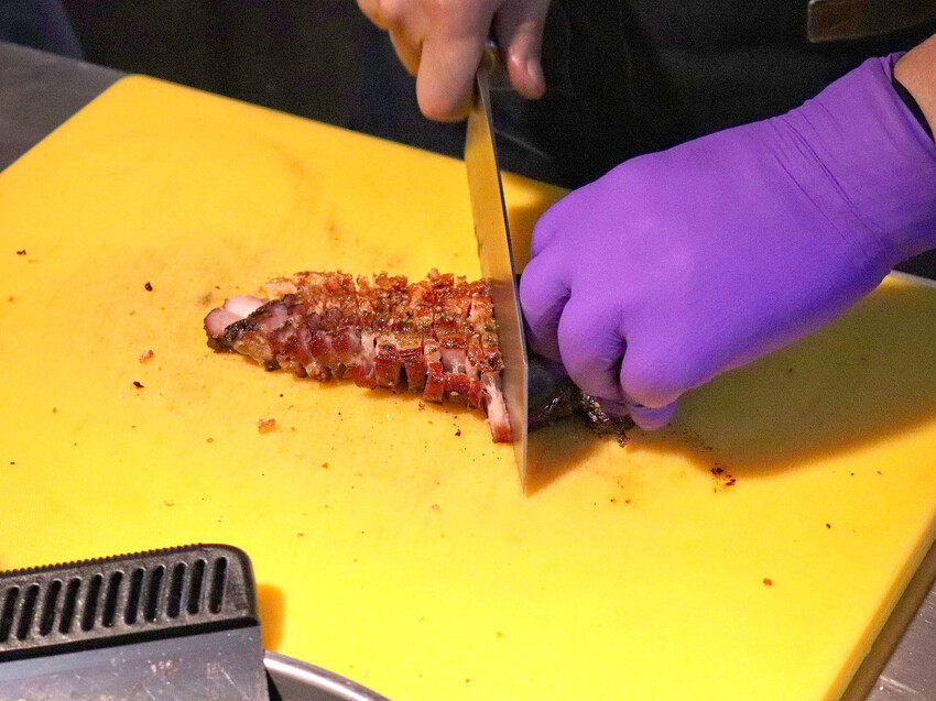 切肉時還可以聽到超酥脆的聲音好療癒,而且切肉全程都有戴手套,注重衛生有加分