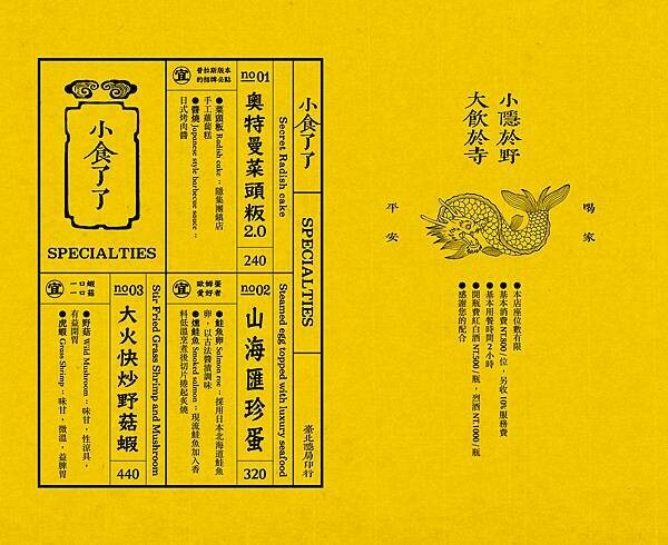 基本用餐2小時,開瓶費紅白酒500/瓶,烈酒1000/瓶