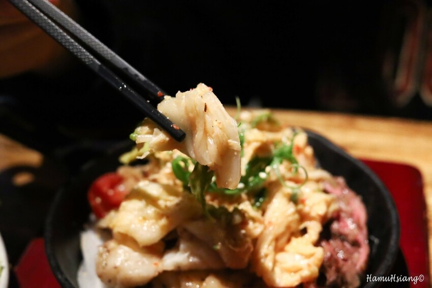 黃金泡菜有點小辣,加上最底層的洋蔥鮮甜,讓沙朗整個口感層次變化很多,一口解膩一口濃郁,超級開胃好吃!