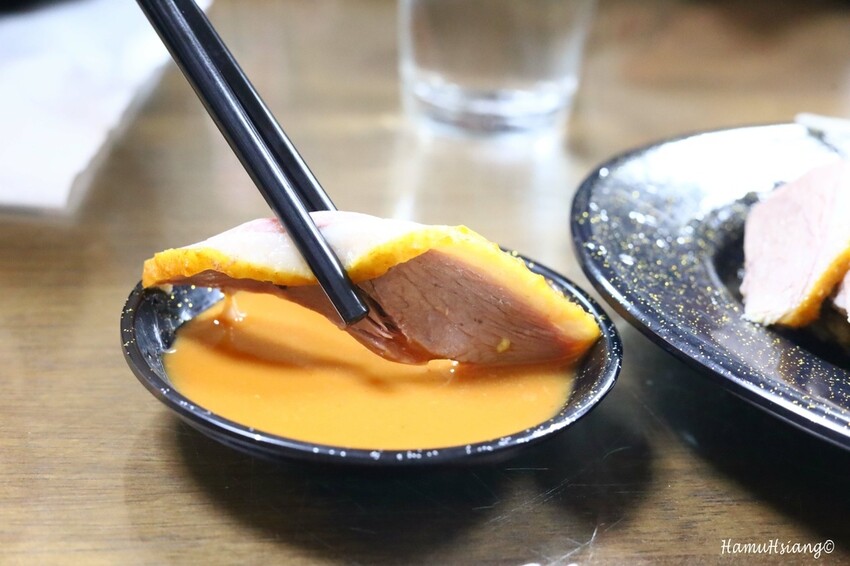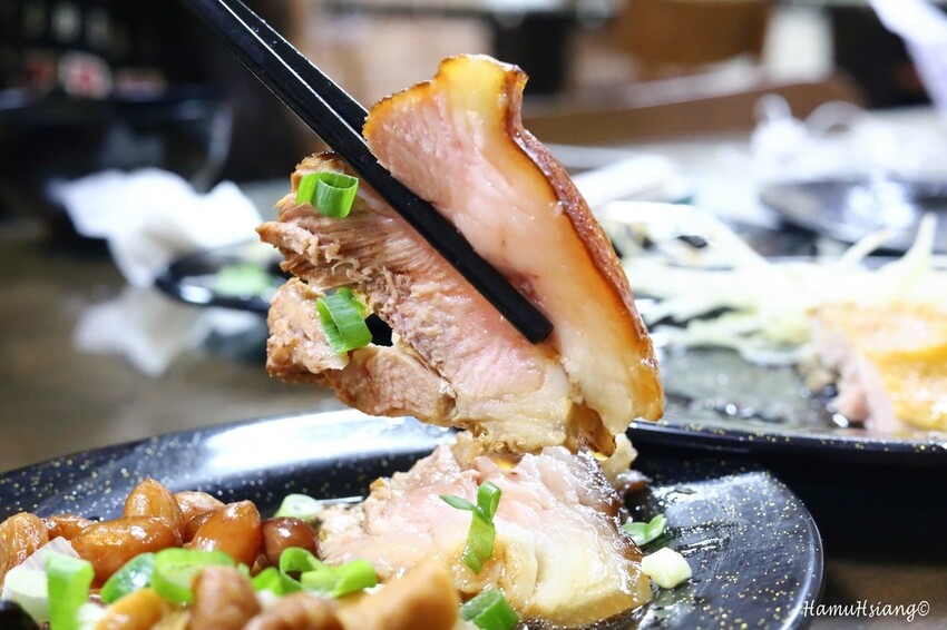 鵝肉比我印象中的還鮮嫩多汁,不虧是溫體鵝,煙燻味的也有入肉,吃起來有點像在吃BBQ烤肉那樣,單吃就有味道