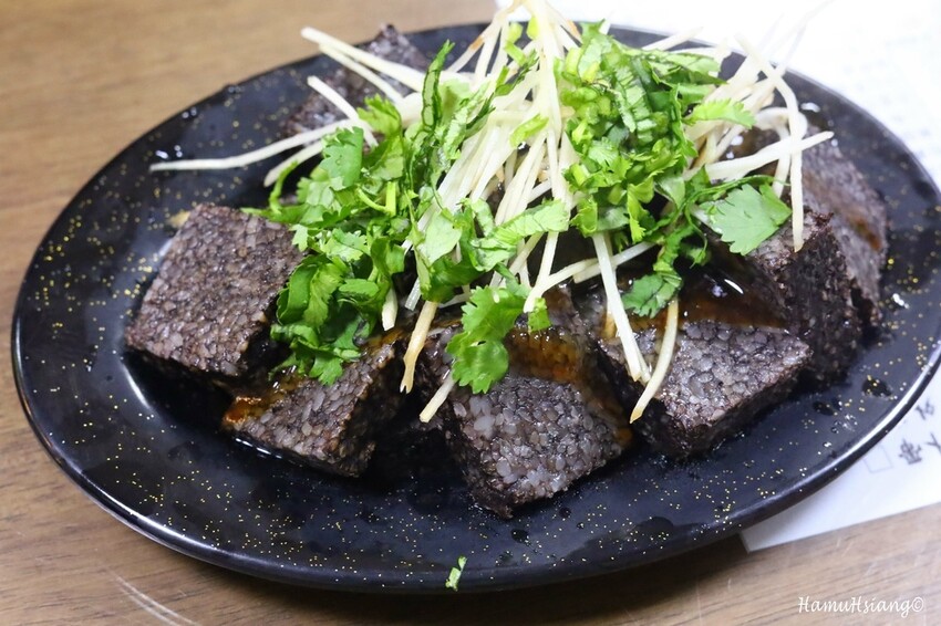 上方還搭有香菜與薑絲再加上醬油膏非常鹹香,是店裡人氣小菜之一唷!