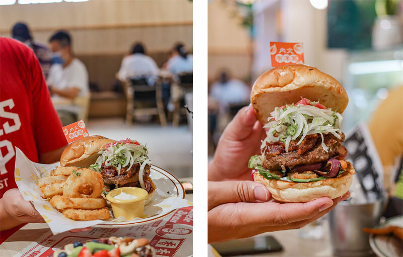 底層鋪墊墨西哥炸辣椒,堆疊芝麻葉、洋蔥、瑪芝拉起司,厚實的加拿大牛肉漢堡肉排配上滿到爆炸的海量香菜,牛肉口感紮實多汁不膩,而大家最好奇的香菜會是怎麼樣的味道呢?