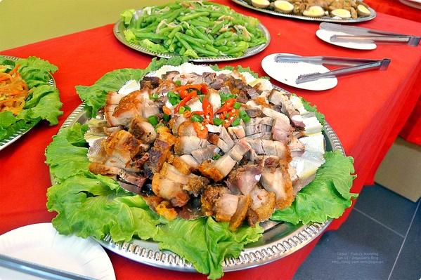 中午行禮之後,下午的婚宴也在同樣的會場辦理(地下活動室),有別於以往所參加的喜宴形式。