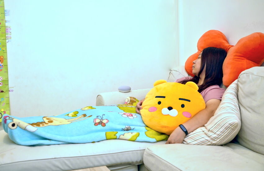 ▼智慧音箱燈亮起後,說出情境指令,這裡我設定的是”媽媽睡午覺”~