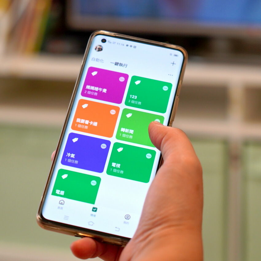 ▼設定好智慧遙控器,這是我另外設定多組聲控、一鍵執行的指定,看起來是不是很療癒啊~