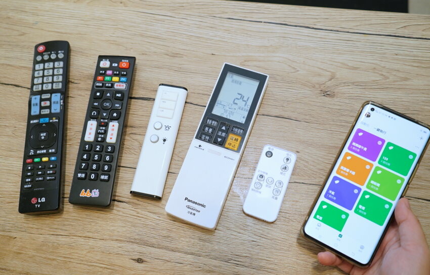 ▼在設定基本連動的同時,我把家中所有遙控器拿出來,這才發現真的夭壽多! 後來才把比較少用的熱水器、電動曬衣架剃除,另外需要注意的,智慧遙控器可以設定的限制在常見的紅外線遙控器,如果是使用藍芽的遙控器就無法設定囉!