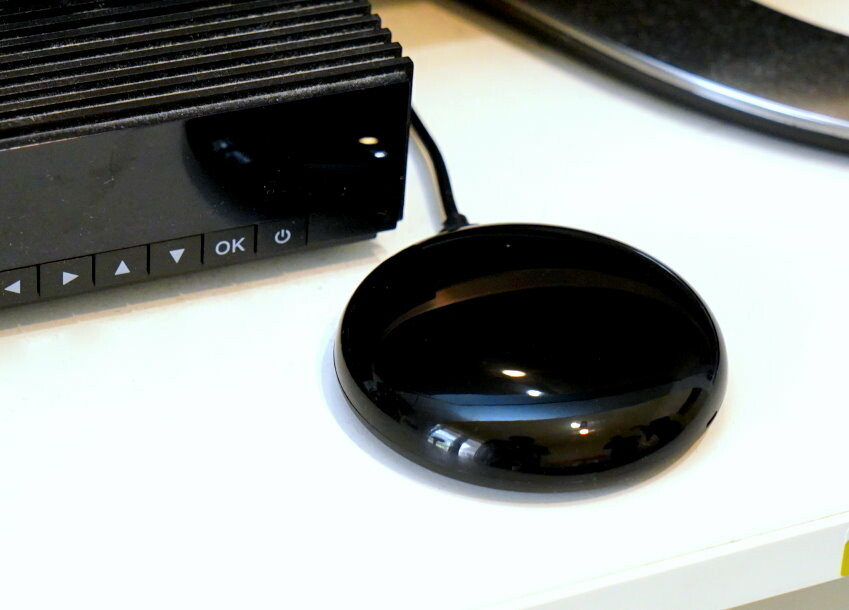 ▼智慧遙控器與音箱只需要接上電源即可開始運作、設定,智慧遙控器附有變壓器可以連接家中的插座,或是家中有第四台,也可以直接連接在第四台機上盒附的USB電源接孔,工程師提醒,由於智慧遙控器的訊號是向上發射,所以不論位置設定在哪(透過反射也可),記得要測試該位置可以讓遙控的家電收到訊號,例如:不可在電視後面,因為這樣電視就收不到指令了! (哈)