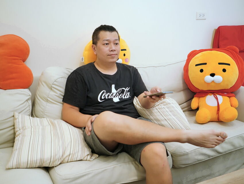 ▼設定好後,桌上淨空了,拿著手機就可以”老神在在”的控制客廳所有的家電囉! (這表情真的很…..)
