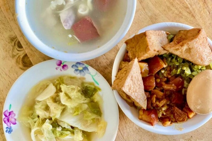 店內賣得東西非常簡單,就是滷肉飯、滷肉便當、肉羹飯三種為主,其他的有小菜、湯品等等。我真的是超愛這種古早味早餐,尤其看到魯肉飯就很愛(不是肉燥飯喔)!