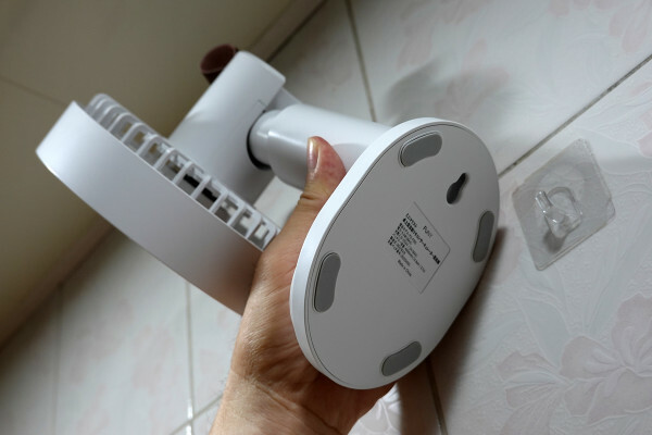 套在自黏掛鉤上就變成好用的掛扇,因為這台電風很輕盈,所以不用擔心電風掛上後會讓掛鉤從牆壁脫落。
