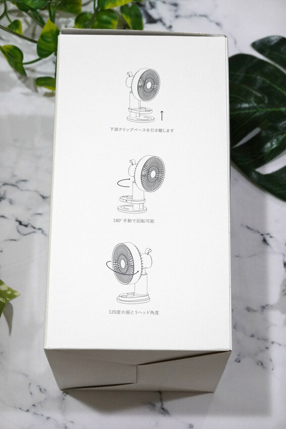 盒子上的圖解其實已清楚點出產品特色,別看這桌上型遙控電風扇體積小小的,功能性還蠻強的耶!