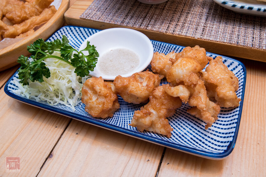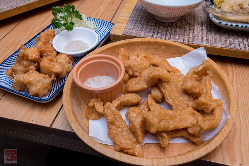 這三款炸物小編覺得是愛搭膳的特色炸物,手工天婦羅就是手工甜不辣,小編就是喜歡手工的,因為口感更Q,因為炸過味道更香。手工花枝漿吃起來很扎實,而且咬到的花枝塊也不少。薑爆雞算是主廚拿手菜之一,炸過的薑片吃起來脆脆的很像餅乾,還是保留著薑的香氣和口感,不會辣,而雞肉的皮很酥脆香,肉質很嫩,個人覺得必點,配飯和單吃都不錯。