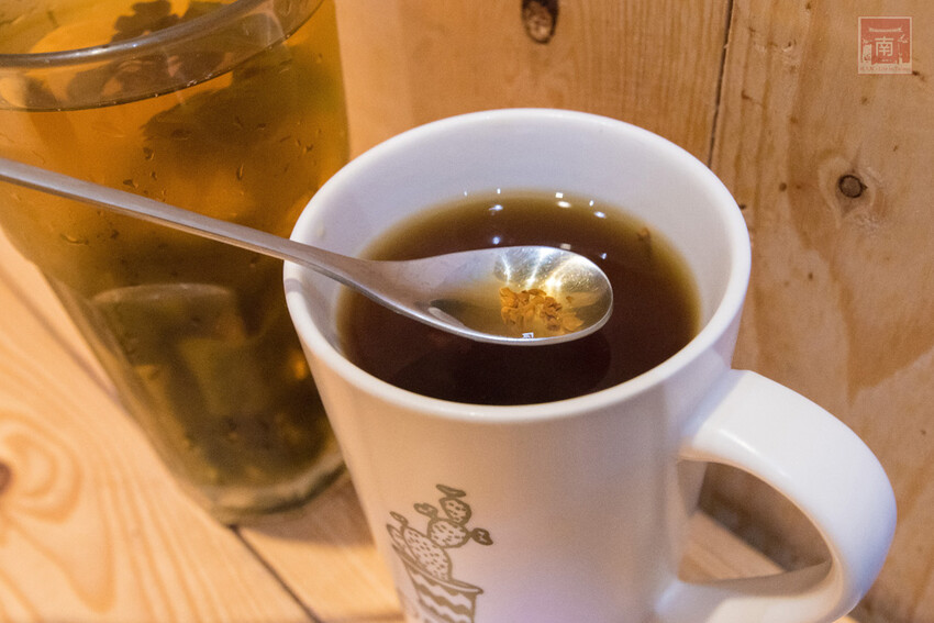 冷泡茶不是使用茶包,而是可以看到整葉的茶葉,是使用高山茶葉冷泡的,喝起來很清爽。蜂蜜桂花釀小編是點熱的,很建議熱熱喝比較香,而且口感上也不會太過於甜,只是用蜂蜜帶出桂花香。
