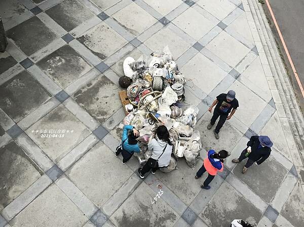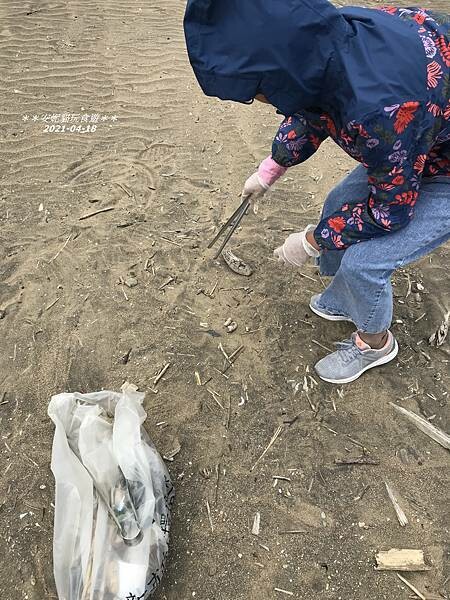 風很大,女子組其實垃圾袋被吹跑了很多次,撿好的垃圾都被吹走又重來