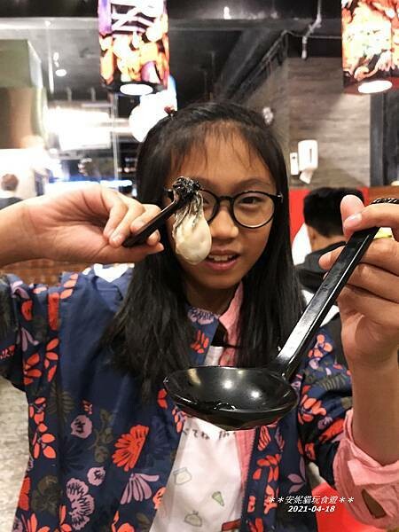小女孩夾了一隻肥美的蚵要貢獻給爸媽
