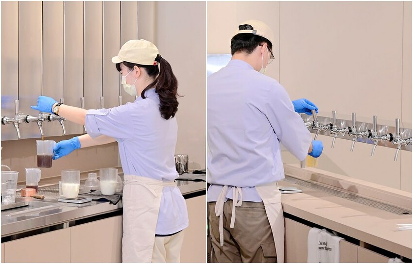 其實這是裸放茶旅為了茶飲特別訂製的3度C低溫氮氣填充保冷設備,除了視覺上好看以外,更為了保留茶飲的原始香氣、口感及鮮度,更大大降低與空氣接觸,讓每款茶品不苦澀更回甘,