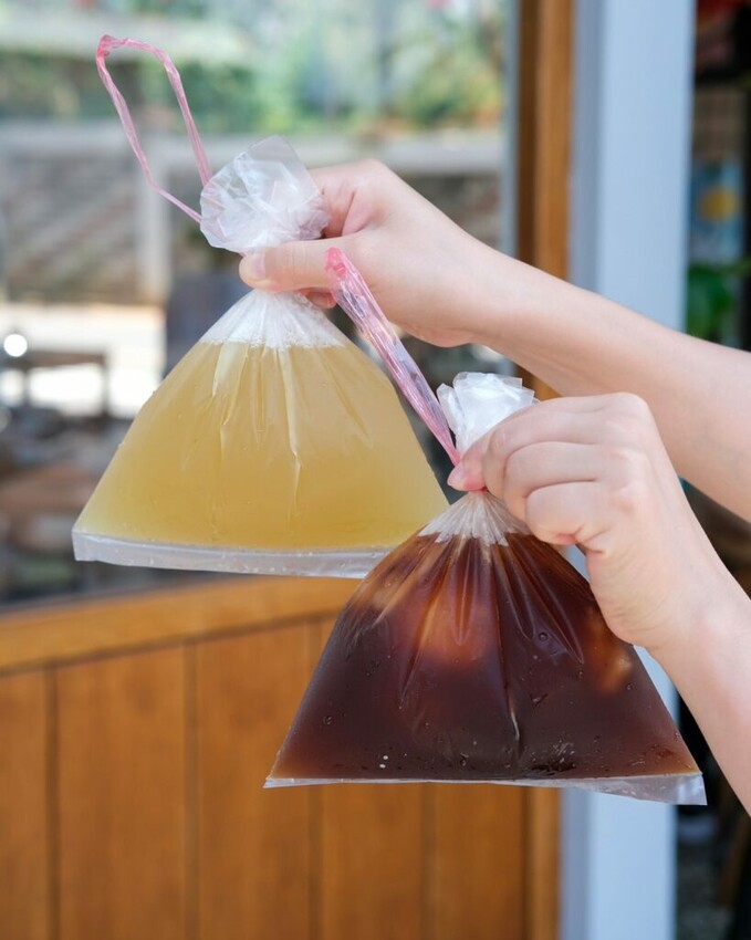 ▼以透明袋子盛取的冰涼飲品,一眼就能看見清澈的茶湯,貼心設計也能輕鬆大口吸~