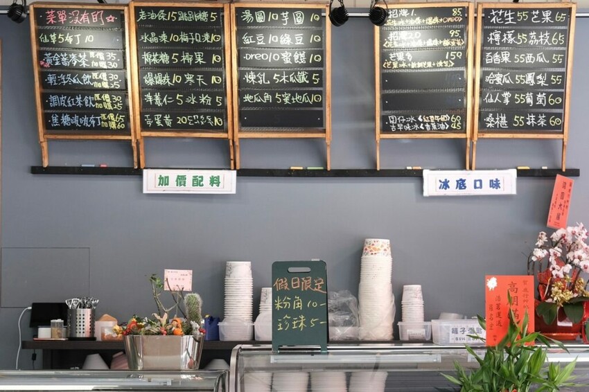 【鹿行艸地】以創意系冰品為主打,選用當季水果製成基底的冰,可以再加點各式各樣的配料,另外也有店家特製的獨家口味,以及袋裝的古早味清涼飲品,手寫的菜單也多了一股溫度。