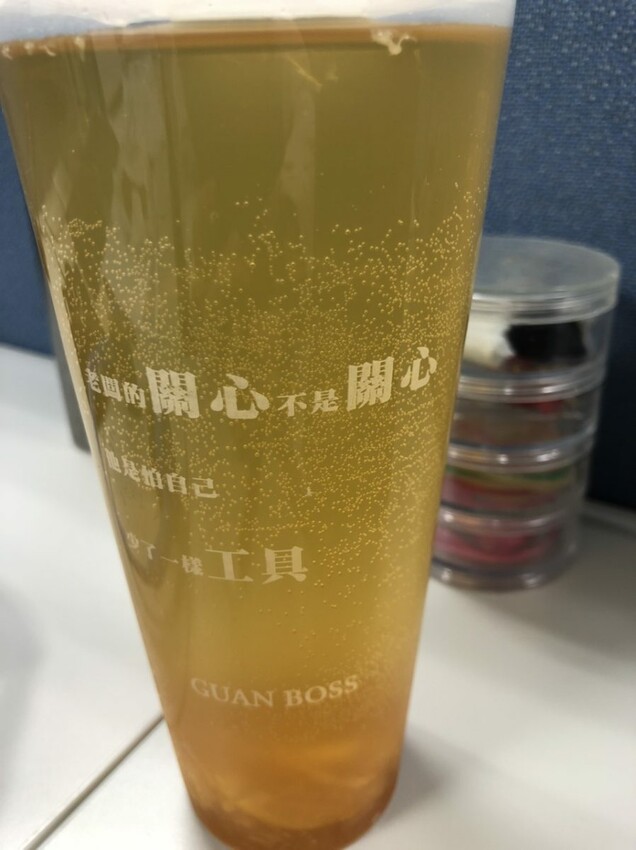 好解渴,真的很適合到來的夏天~~杯子上的標語很吸引我的注目XD真是徹底道盡了上班族的心聲啊~喝到最後還有柚子好吃,好有嚼勁~