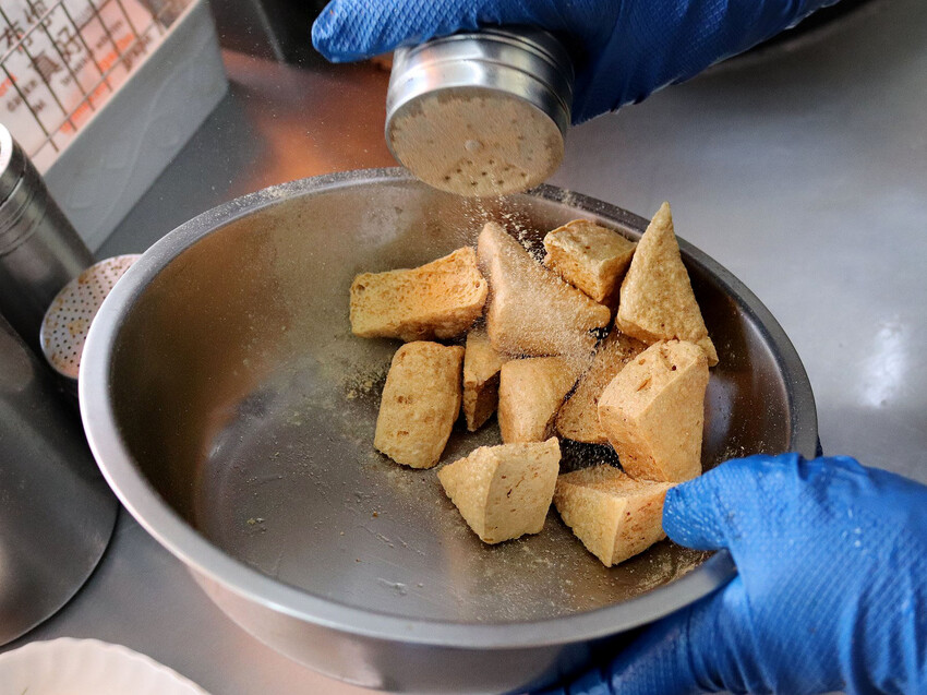 吃起來外酥內嫩,單吃胡椒口味或是搭配醬汁、咖哩、泰式也都很對味;另外她們家臭豆腐屬於比較不臭的類型,很適合怕吃完被自己臭暈的族群來吃