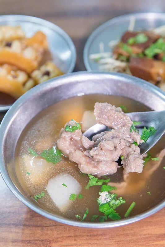 魯肉飯鹹香略帶甜味是我喜歡的那種,白飯也煮得相當有水準,肥肉略帶膠質的豬皮,吃完唇甜微甜,醬汁緊緊的巴在粒粒分明的白飯上,真得非常有水準,足以進入板橋三大魯肉飯的名單(好吃的形容詞,並沒有真的所謂前三)。