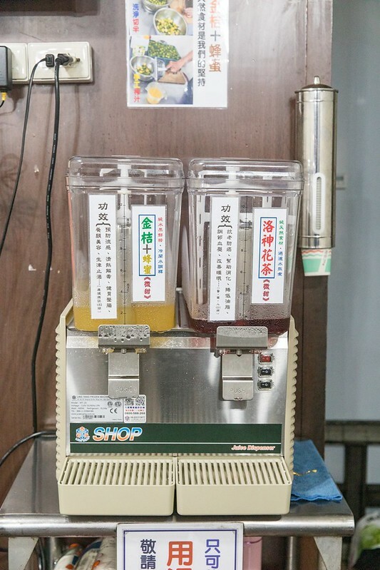 店裡提供金桔蜂蜜和洛神花茶兩種冷飲無限暢飲,你還真別說兩種都非常好喝,尤其是金桔蜂蜜,標榜都是純手工自製,不是那種買現成的便宜飲料。