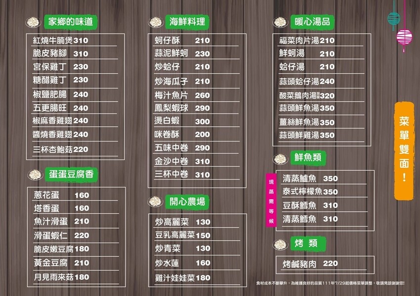 ▲如果有選擇困難的人,也可以參考店家搭配好的合菜!合菜除了內用,也可以外帶,但前提都是需要提前2天預約唷!