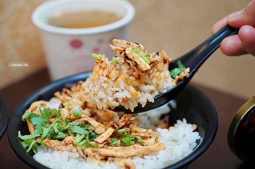 口水雞肉飯一定要拌勻後再開吃,才能感受到店家特製的香辣口水醬,那辛香帶勁的辣香襲擊味蕾的沁動感、雞肉的柔嫩、香菜的加分,一整個大滿足~~