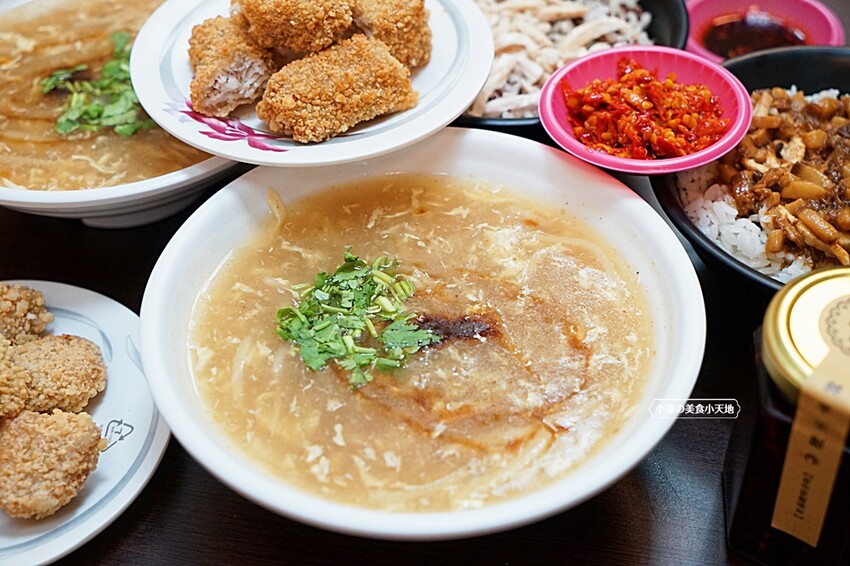 採用拉麵湯底手法,以大量雞骨、蔬菜、扁魚慢火熬煮出來的湯頭就是不一樣! 這裡的香酥虱目魚焿有別於一般羹湯,喝起來比較有著清爽的口感及甘甜的風味,尤其還有不少高麗菜的加持更是美味~