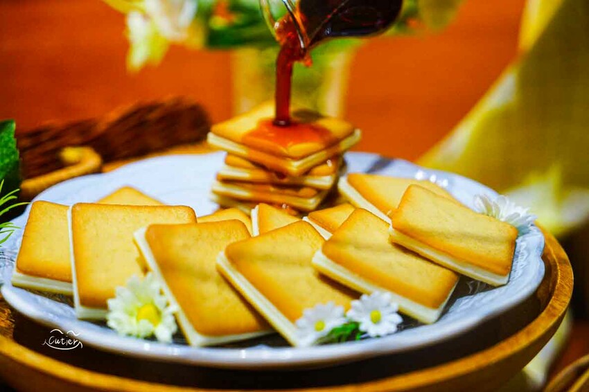 酥脆奶香四溢的薄脆餅乾體以加拿大魁北克楓糖漿、發酵奶油製成,中間夾層是質地如奶油般滑順的奶油巧克力,楓糖香氣十足很難讓人不愛!