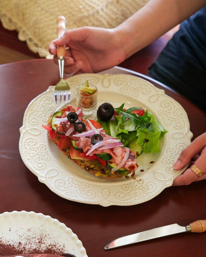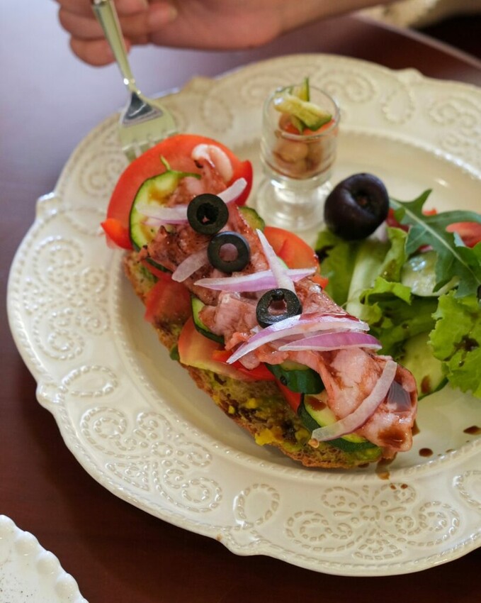 ▼開放式三明治以鄉村麵包為基底,抹滿酪梨醬再放入培根生菜,整體爽口不清淡,只是份量偏少了一點。