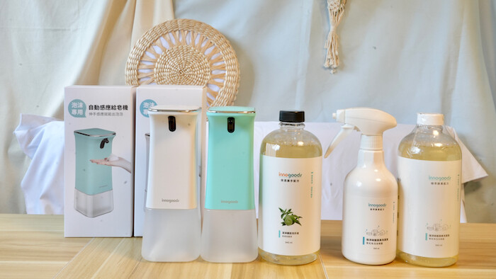 推薦大家購買innogoods給皂機,可以搭配他們家最厲害的產品之一「洗手液」,這是一款邊洗手邊保養的洗手液,而且不需要稀釋,直接就可以放入給皂機使用喔!
