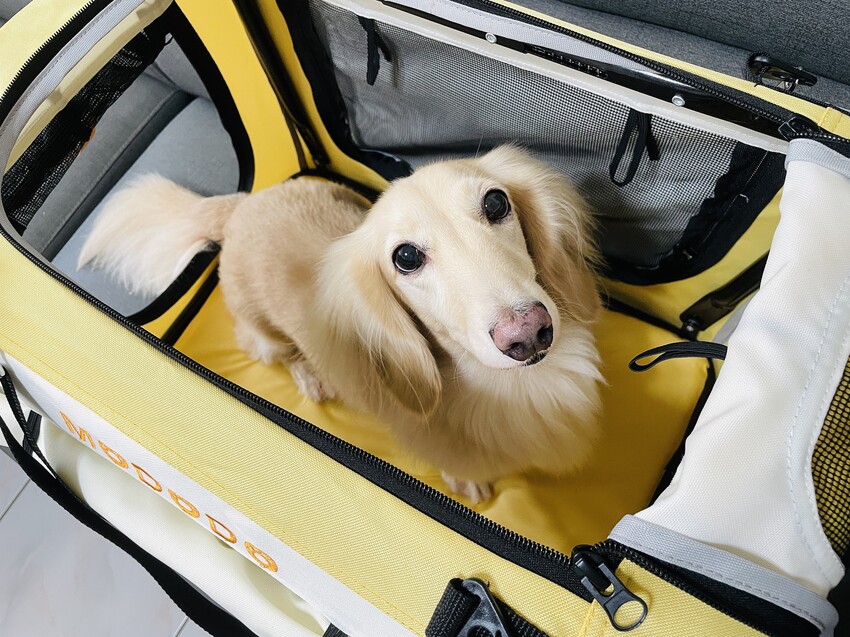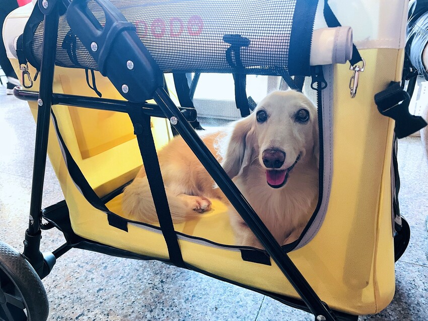 恭喜小臘腸咪咪終於擁有狗生第一台寵物推車!摸肚肚MODODO -GOGOBOX小立方寵物推車