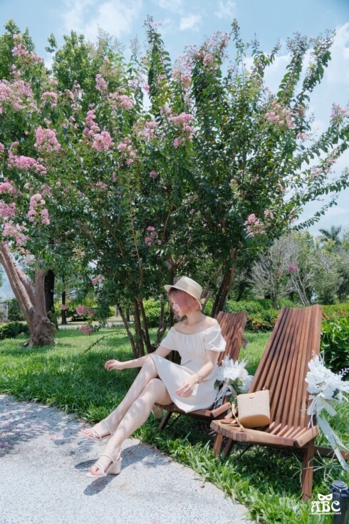 ▲成美文化園推出紫薇花季節限定活動,打造浪漫網美風場景供遊客拍照