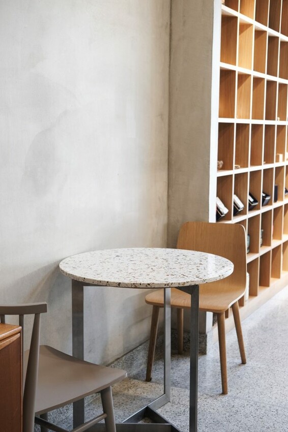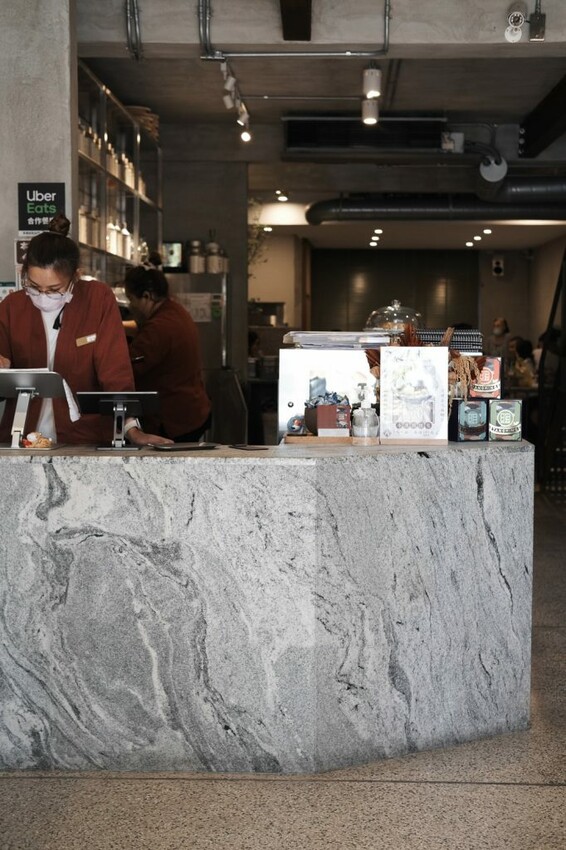 ▼【湯明茶樓】由五十年歷史的老宅改建,剛走進便感受到一股清新氛圍,無論是精心設計的全白網美牆,還有大理石材質打造的典雅櫃台,以及充滿復古感的磨石子地板,都讓人忍不住想要大拍特拍。
