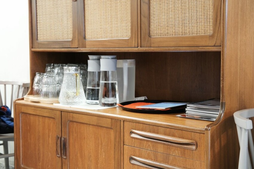▼【湯明茶樓】用餐空間共有兩層樓,一樓以兩人及四人的團體座席為主,二樓則是適合獨自用餐的木製長桌,無論是個人還是多人都能好好用餐,另外還有提供插座可以自由使用。