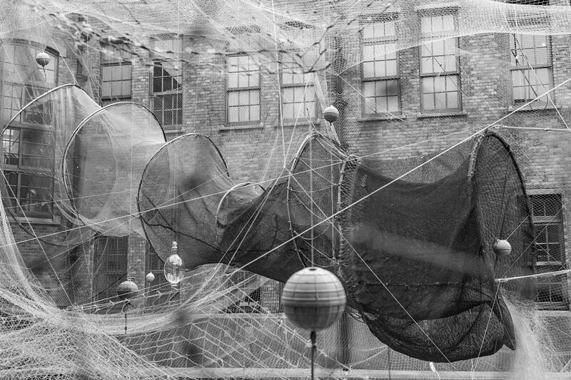 位於中庭的巨大作品,以環保回收的廢棄漁網、複合媒材、動力、燈光參照基隆漁會正濱大樓的中庭構成與歷史脈絡,由喜歡使用自然材質從事創作的陳淑強老師進行的現地創作,取名為「潮來潮往」;挖掘屬於基隆的人文記憶,透過藝術創作來展現。以期能將過往所累積的涓滴,匯流成奔向未來的浪潮。