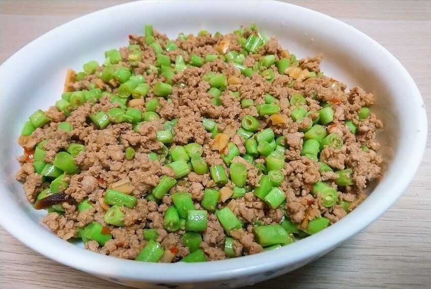 這次使用究好豬-黃金比例絞肉加上四季豆切丁,添加醬油膏滷燉一下,放些蒜頭末爆香就超級無敵美味啦!