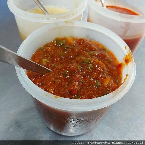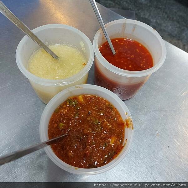 現點現炸在裡面也是等了10分鐘,桌上有大蒜、辣椒和獨門醬料可以加,泡菜給的毫不手軟!