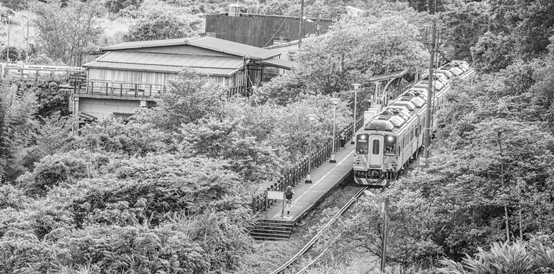 網路上瘋傳的自然不是此等不專業的模樣,有興趣的朋友可以在google隨便搜尋便有一堆,漂亮嗎我覺得很美,所以才來。但拍完後,不,正確的時間點,應該是火車經過月台後,我按下快門之前,有著一種日本鐵道祕境的fu,那時隨著我的快門聲,有一首歌在我耳際響起:「回家的感覺在不遠的地方...」,不過我想把回家、改成離家,尤其是當我事後把照片變成黑白照片。