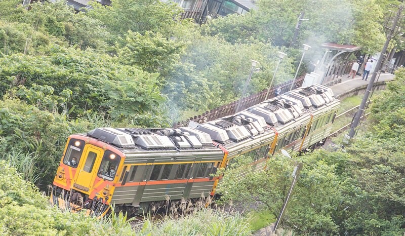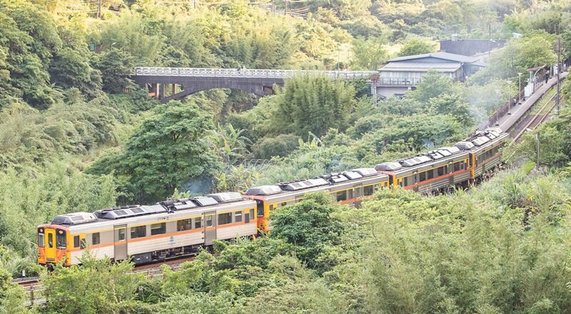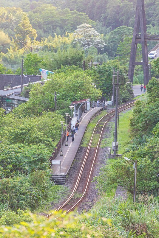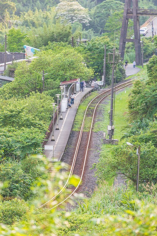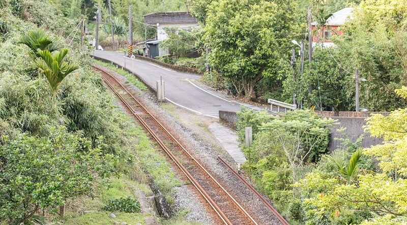 過了平交道,基本上就是貼著鐵道而走,路面是柏油路,也沒什麼坡道,時不時就會有火車經過,沿路上其實就有不少景點可以拍到各種角度的平溪小火車,只不過就是要花時間「等」。