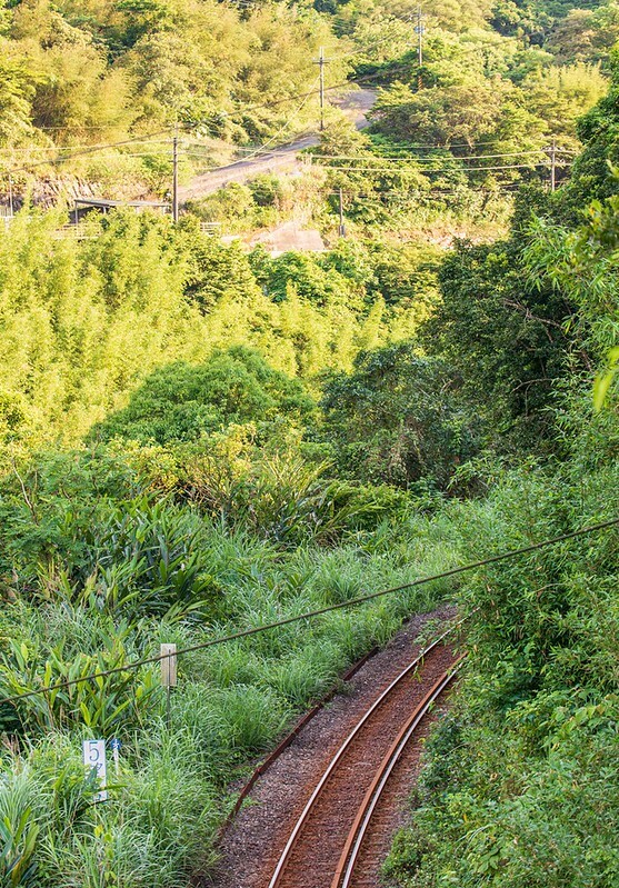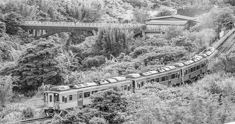 好,是我太入戲了,咱們回頭來說說這拍攝鐵道祕境的方法。首先,你得有遠鏡頭,手機不太能拍出效果....因為拍攝點離火車站真是有一點距離,我是以300端的鏡頭拍攝,還要加上裁切才有此等效果。手機,也不是不能拍,但可能效果有限。因為目測真的只有一點點...。