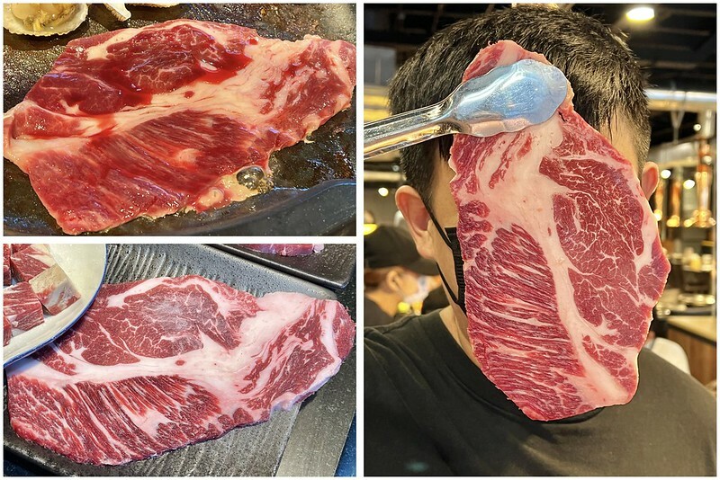 2.別以為是吃到飽肉品很粗糙,安格斯背肩居然比臉還要大,大口吃肉真的好過癮!肉的厚度十足口感特佳、真不敢相信是這麼便宜吃到飽就能吃到的美味!