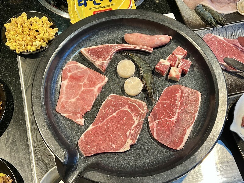 599元套餐方案享有的牛肉選擇真的很不賴,南美翼板的骰子牛肉烤到六面金黃色,一放入口中滿滿牛肉湯汁,比專賣店的還好吃,在夜市一份都一百起跳,來這邊多吃幾份超回本~